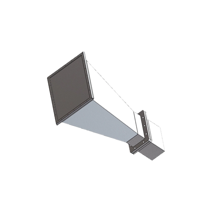 Features a sealed gray PVC radome and aluminum body, protecting the waveguide from rain and dust in outdoor deployments.
